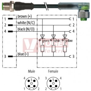 Odkazy SAIL-M12GM12W-4L5.0U konektor M12/4-pin/vidl/přímý - kabel ČE PUR 4x0,34mm2 L=5m - konektor M12/4-pin/zás/úhlový/2xLED (1906410500)