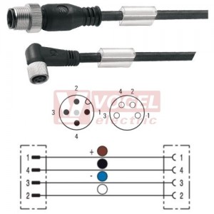 SAIL-M12GM8W-4-5.0V konektor M12/4-pin/vidl/přímý - kabel ČE PVC 4x0,25mm2 L=5m - konektor M8/4-pin/zás/úhlový (1938210500)