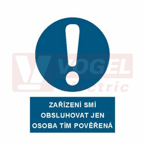 Samolepka příkazová "Zařízení smí obsluhovat jen osoba tím pověřená" (bílý tisk, modrý podklad), symbol s textem (3907A) A5