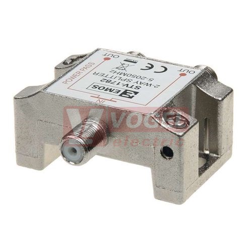 STV1782 rozbočovač dvojnásobný do 2,3GHz, průchozí pro stejnosměrné napětí mezi dvěma výstupy, pro F konektory (J0501)