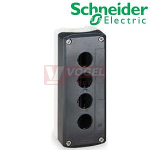 Parametry XALD04 Prázdná plastová skříň 4-otvory, tm.šedé víko RAL7016, 22mm, plast, 68x166x53mm
