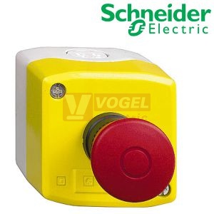 | XALK198 Skříň ovládací 1-tlačítková, ŽL víko, tlačítko hřib. RU pr.40mm, s okamžitou aretací, "stiskni-táhni", 1V |