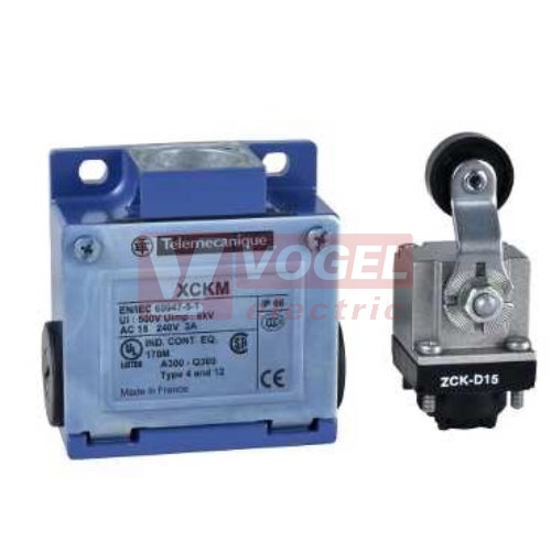 XCKM1656024 Polohový spínač Universal Classic, kovový, páka s plast.kladkou, 1Z+1V, s mžik.funkcí, 3 kabel.vstupy M20, IP66