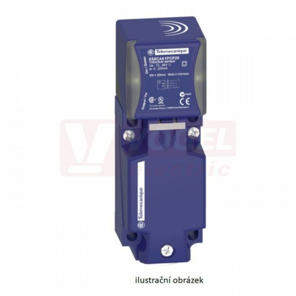 XS8C4A1DPN12 Indukční čidlo 40x40x117mm, 5-polohové, 12-48VDC, Sn=20mm, stíněný, plast, 2-vodiče, NO+NC, šroubové svorky, 4x1,5mm2, 1/2" NPT kabelová průchodka, IP65/67/69K