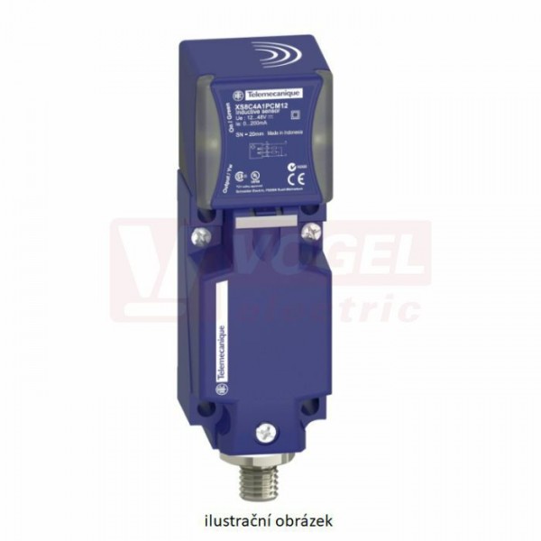 XS8C4A4PCM12 Indukční čidlo 40x40x117mm, 5-polohové, 12…48VDC, Sn=40mm, nestíněný, plast, 4-vodiče, PNP/NO+NC, konektor (samec) M12/4pin, IP65/67/69K
