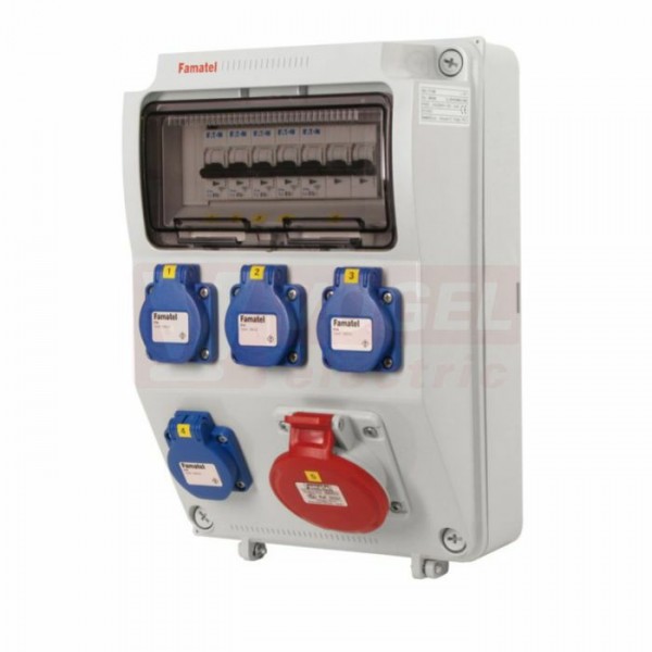 Zásuvková skříň ZSF40100000.0 /3950 IP44 jištěná 6kA bez chrániče, zás. 4x230V/16A/3p, 1x400V/16A/5p, všh 490x126x107mm (jisič 4xB16/1, 1xB16/3)