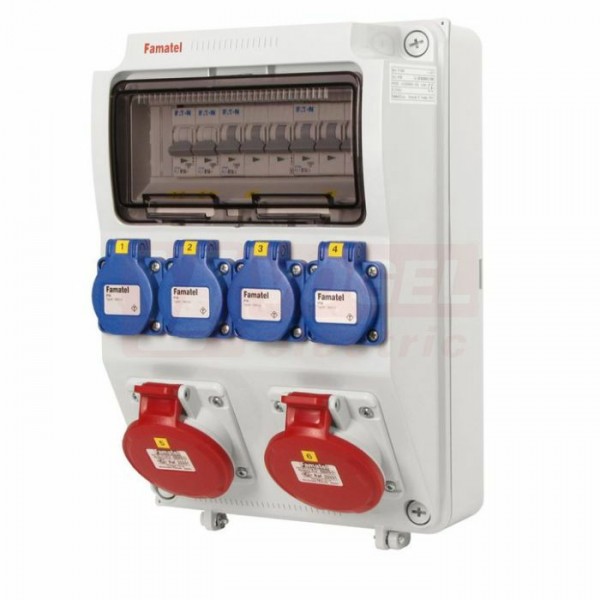 Zásuvková skříň ZSF40200000.0 /3951 IP44 jištěná 10kA bez chrániče, zásuvky 4x230V/16A/3p, 2x400V/16A/5p, rozměry 500x230x150mm (jistič 2xB16/1, 2xB16/3)