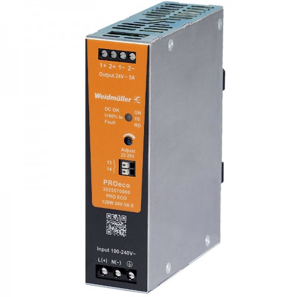 Parametry Zdroj spínaný 1f 24VDC 5,0A (PRO ECO 120W 24V 5A II), rozměr v130xš35xh100mm (3025570000)