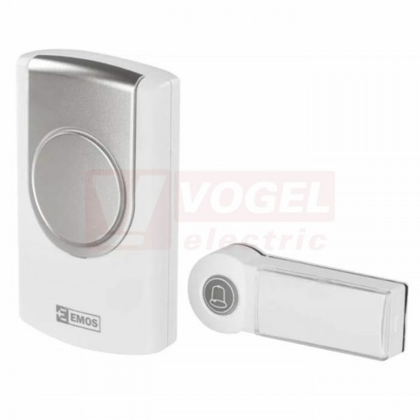 Zvonek domovní bezdrátový 98098, barva bílá, dosah 100m, přijímač na 3x1,5V AA, 36 melodií, optická signalizace na tlačítku, přídavné tlačítko P5723T, napájení tlačítka 1x3V CR2032, 75dB, 433MHz (P5723)